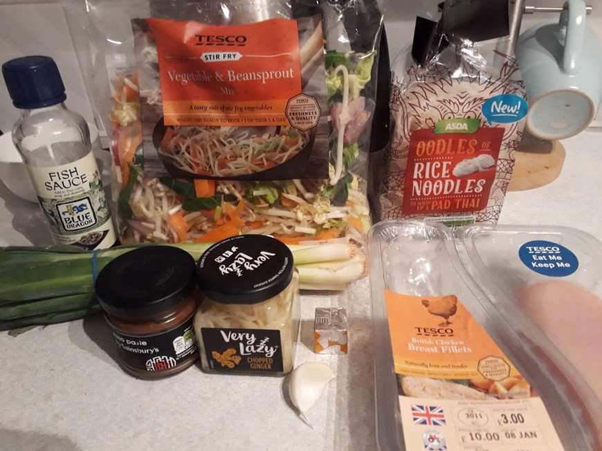 Bring a small pan of water to the boil. Slice the spring onions and chicken into very thin strips ~5mm wide.