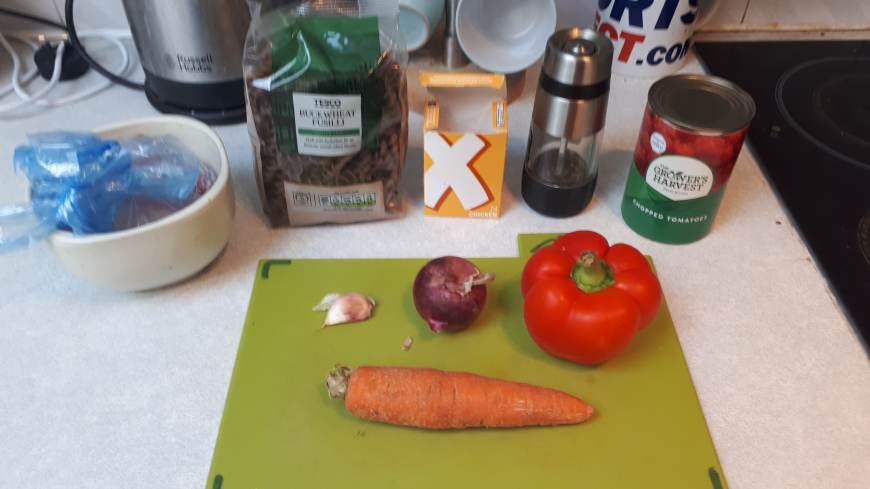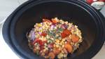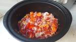 – Chop Pepper, Onion & Carrot (or veg of your choice) and crush garlic and place in the bottom of the slow cooker (cut fairly chunky to stop cooking too quickly)