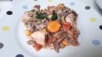 – Add chopped tomatoes and diluted chicken stock to just cover the ingredients